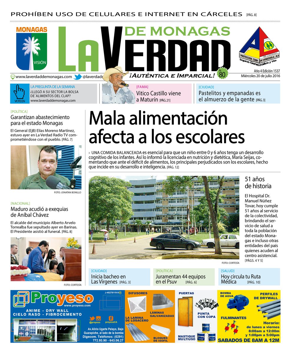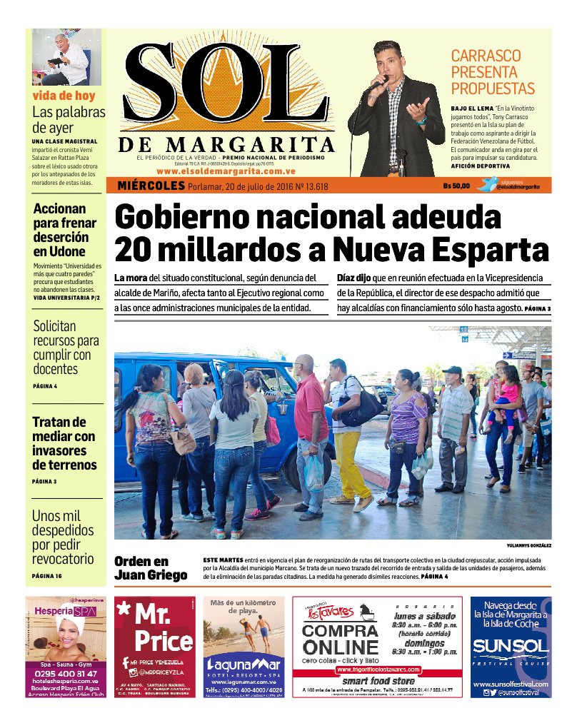 La Guaira, miercoles 20 de julio de 2016 Año 19 Nº. 6067
