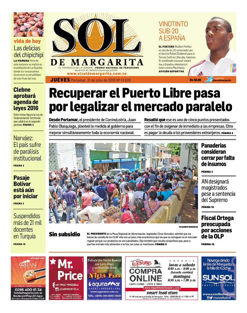 PORTADAS de la PRENSA NACIONAL, REGIONAL, DEPORTIVA y OFICIALISTA del JUEVES 21 de JULIO de 2016