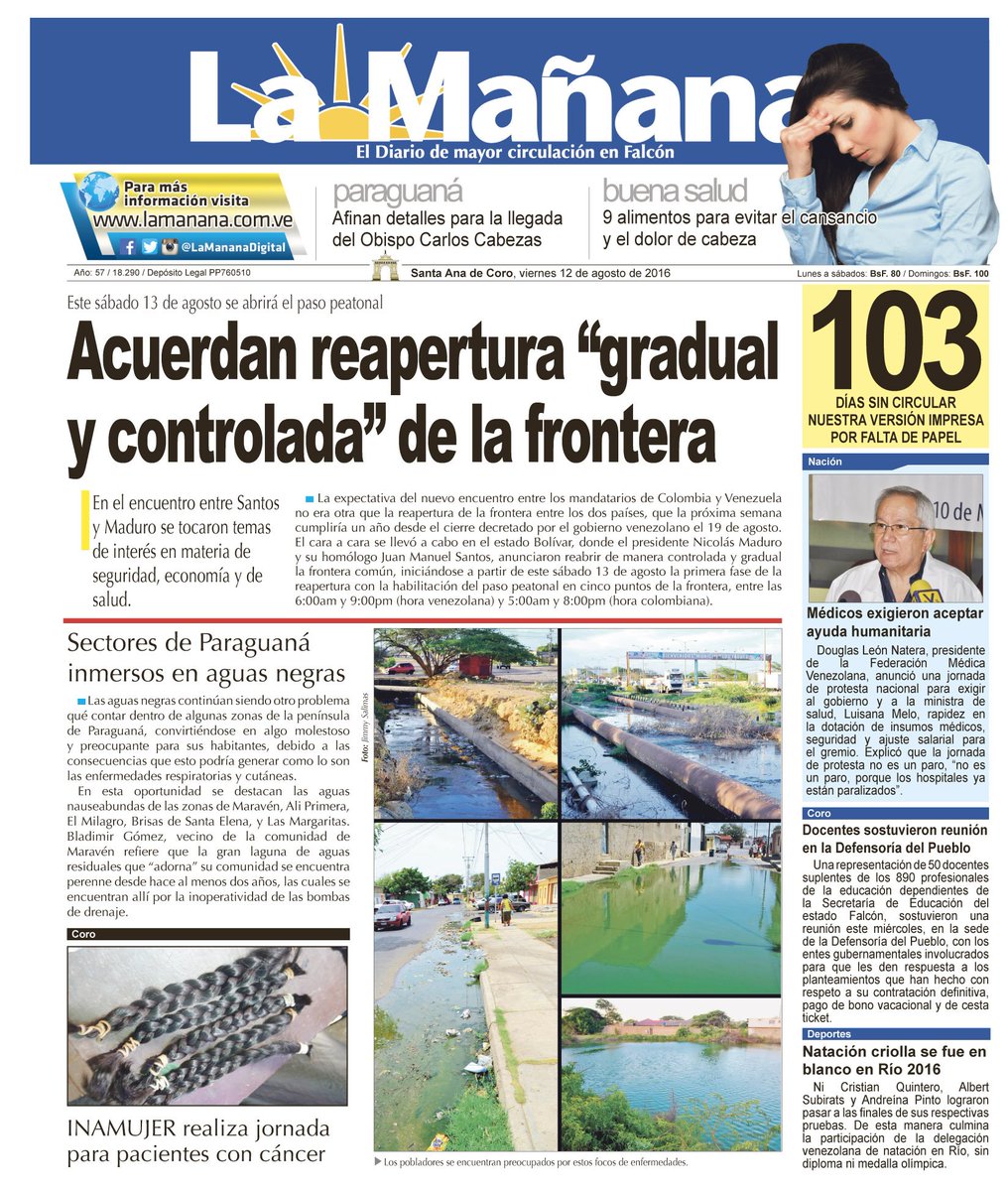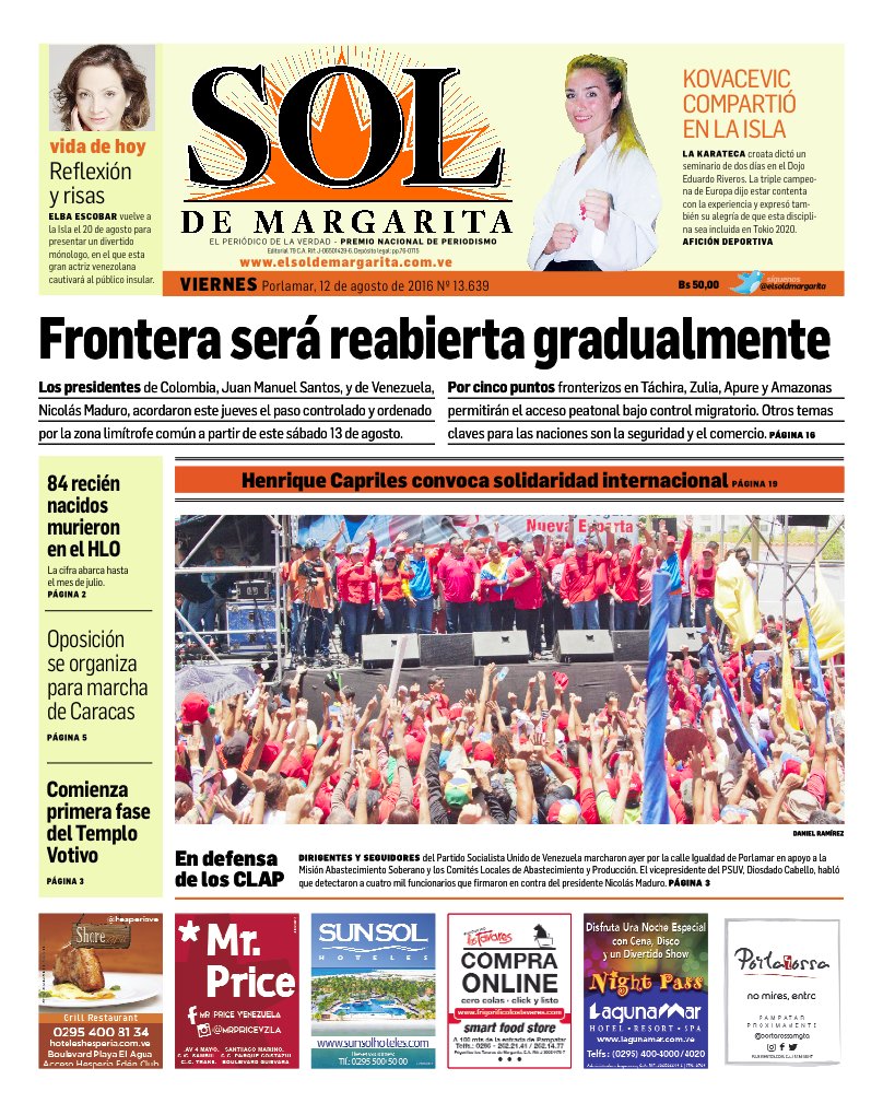 La Guaira, viernes 12 de agosto de 2016 Año 19 Nº 6090