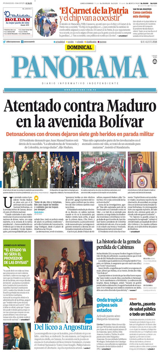 • Pdte Maduro: No tengo duda que se trata de la ultra derecha y que Juan Manuel santos está detrás de este atentado. Los primeros elementos de la investigación apuntan a Bogotá